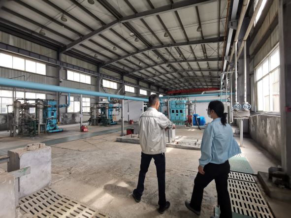 無錫市圣馬氣體有限公司舟山分公司專為金海智造股份有限公司配套供應氧氣,地址位于舟山市岱山縣長涂鎮(zhèn)仙草潭金海智造股份有限公司內(nèi),一期工程于20084月建成并投入使用,二期工程于201110月建成投產(chǎn),但2013年又拆除了原二期工程所安裝的空分設備(保留二期工程中5100 m3中壓氧氣儲罐),目前有11500Nm3/h制氧能力的空分裝置,年制氧能力達到1178N m3,大部分氧氣通過管道輸送至船廠用氣崗位,少量通過匯流排充裝至鋼瓶,供船廠零星用氣崗位使用(未安裝氧氣管道崗位),公司內(nèi)具備年充裝氧氣7.2萬瓶的能力,公司現(xiàn)有職工8人。公司于201889日取得浙江省安全生產(chǎn)監(jiān)督管理局頒發(fā)的安全生產(chǎn)許可證證書編號為(ZJWH安許證字〔2018-L-0304,許可范圍:年產(chǎn)工業(yè)氧氣1178Nm3、氧氣7.2萬瓶。20171221日取得浙江省質量技術監(jiān)督管理局頒發(fā)的氣瓶充裝許可證,編號為TS42337042021,有效期至2021112日。202068日取得危險化學品安全標椎達標證書,證書編號: ABQ IIIWH202000032,有效期至20236月。