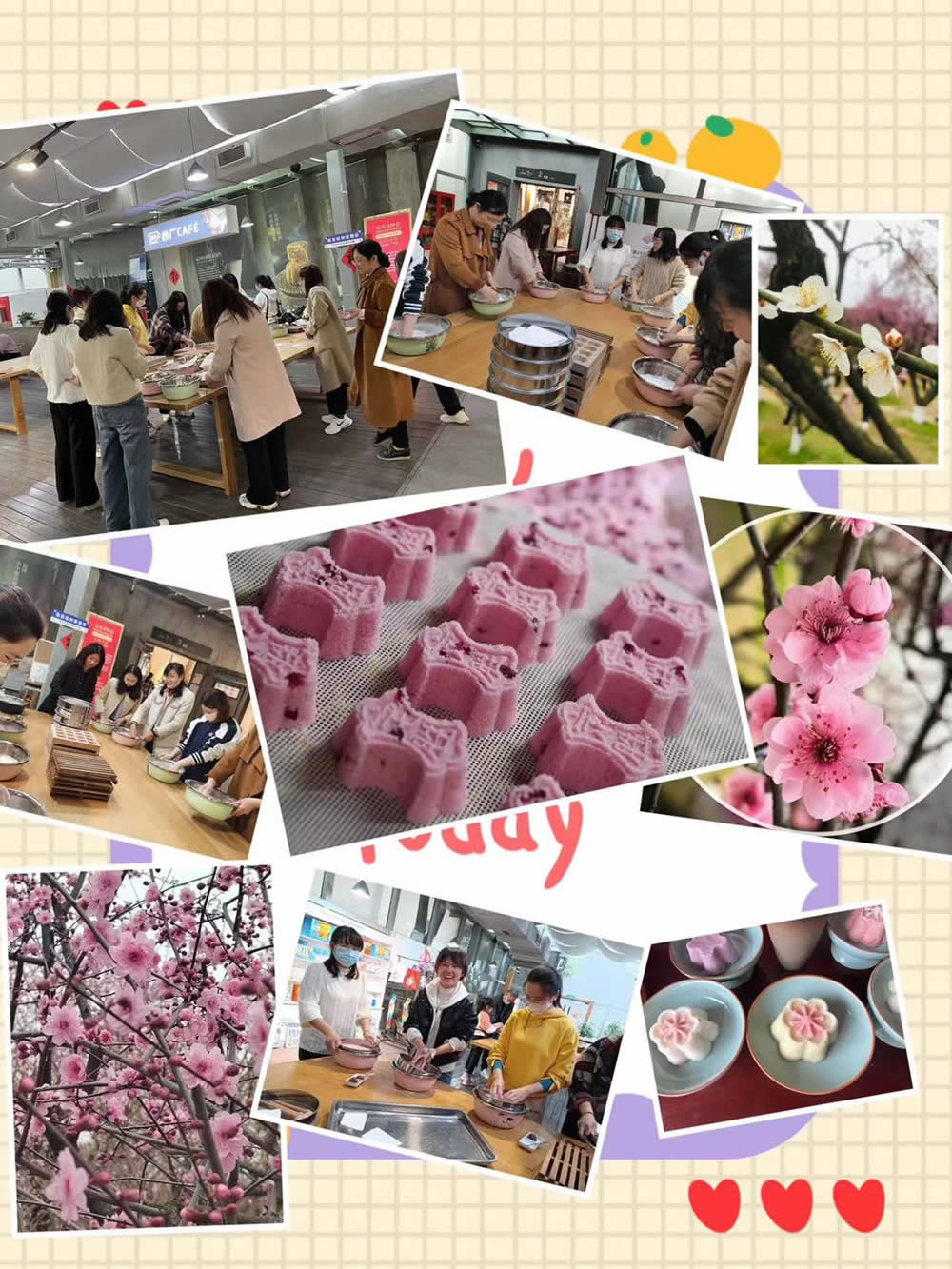 重頭戲在手工藝活態(tài)館大家親手制作了江浙一帶的特色糕點(diǎn)---定勝糕,寓意吉祥美好,意表吃過它凡事步步高。在這樣的特別日子里,泰達(dá)人祝公司和家人都必勝。吃完定勝糕我們賞超山“唐”、“宋”梅,游十里梅花香雪海,沉浸式體驗(yàn)宋韻文化,偶有飄過幾滴春雨,春風(fēng)化雨潤(rùn)紅花,更有一番風(fēng)味。